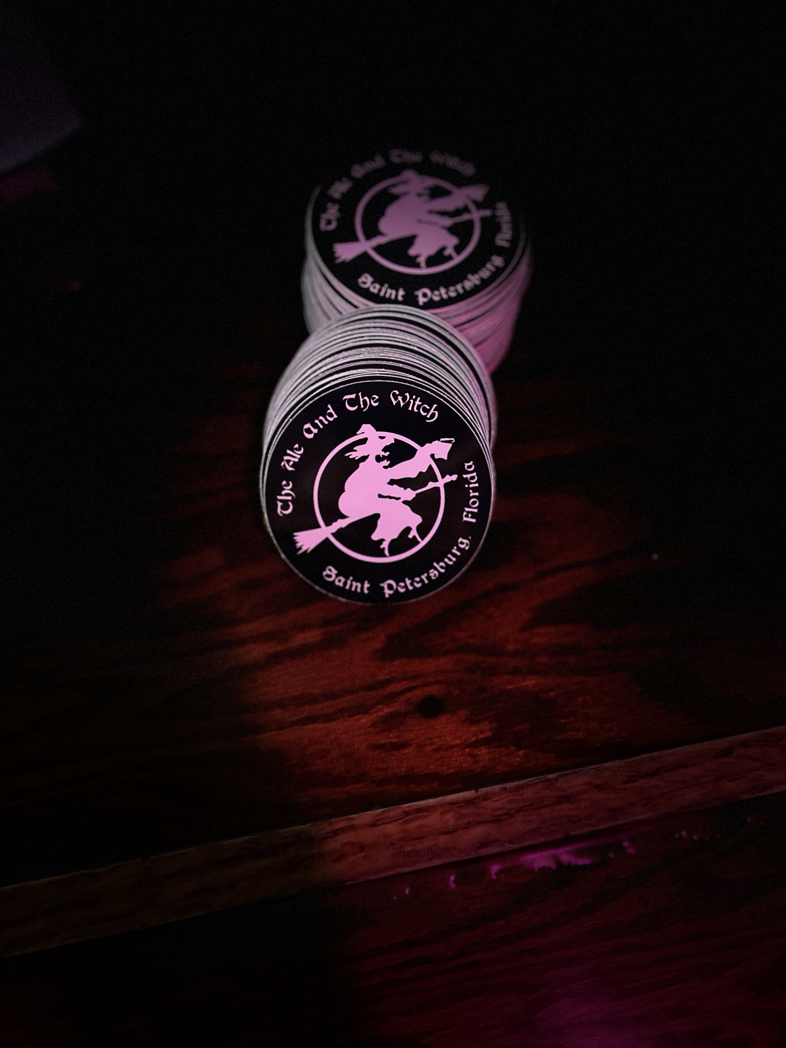 Witch stickers $2 available at the bar